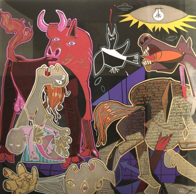 Intervention intrusive sur des œuvres connues ou non, pour en détourner le sens ou le prolonger. Sur le verre qui protège une peinture, une gravure, une photographie, directement sur une couverture de BD… une idée, une scène ou une histoire peuvent également devenir supports